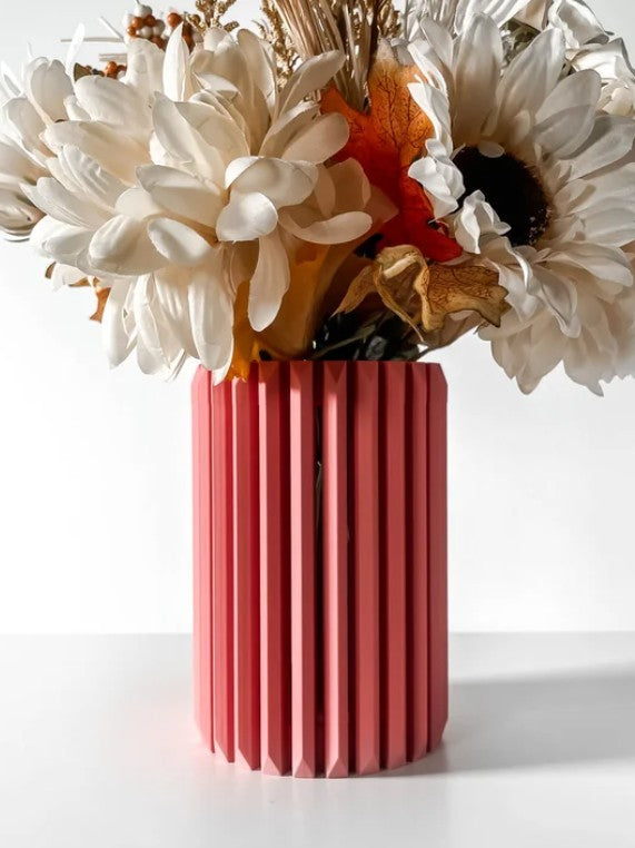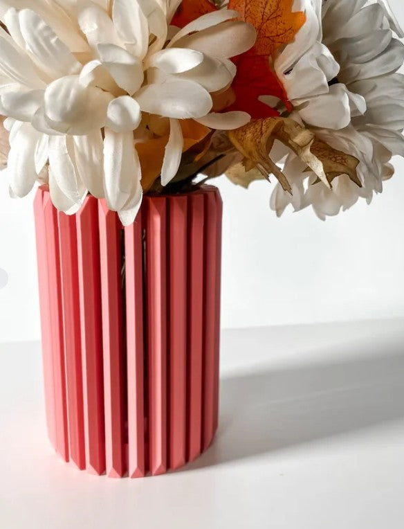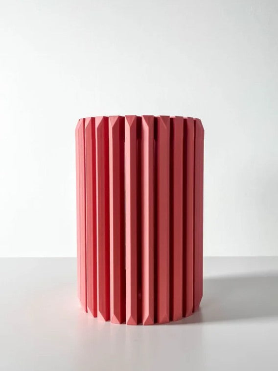 Luma brings structure and softness together. With its clean vertical fluting and warm coral finish, this vase offers a bold yet balanced presence — equally beautiful with florals or standing alone.
