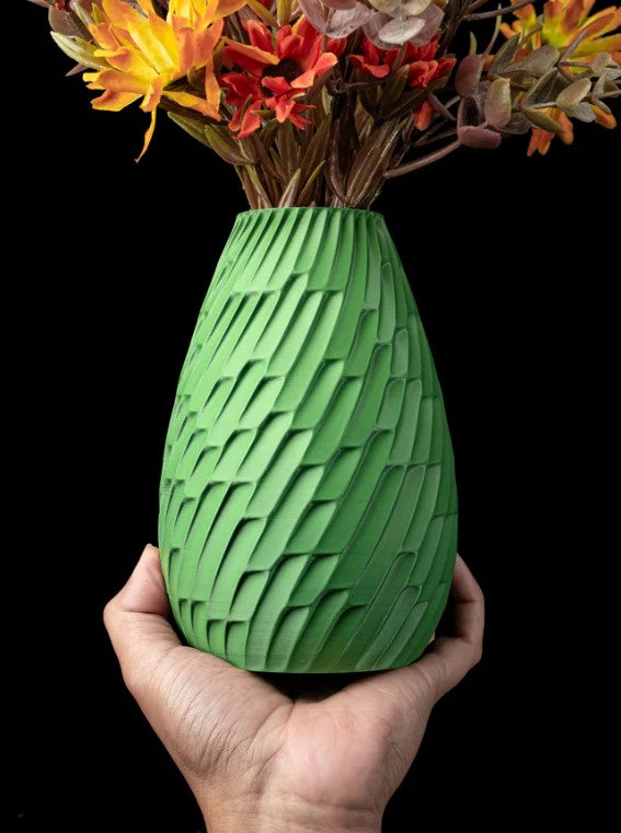 Terran is inspired by the textures of the natural world—layered, grounded, and quietly powerful. Its sculpted, leaf-like pattern wraps around the form in a gentle spiral, creating depth and movement from every angle. Designed for those who appreciate modern organic design, Terran brings an earthy elegance to any space, whether holding fresh stems or standing alone as a statement piece.