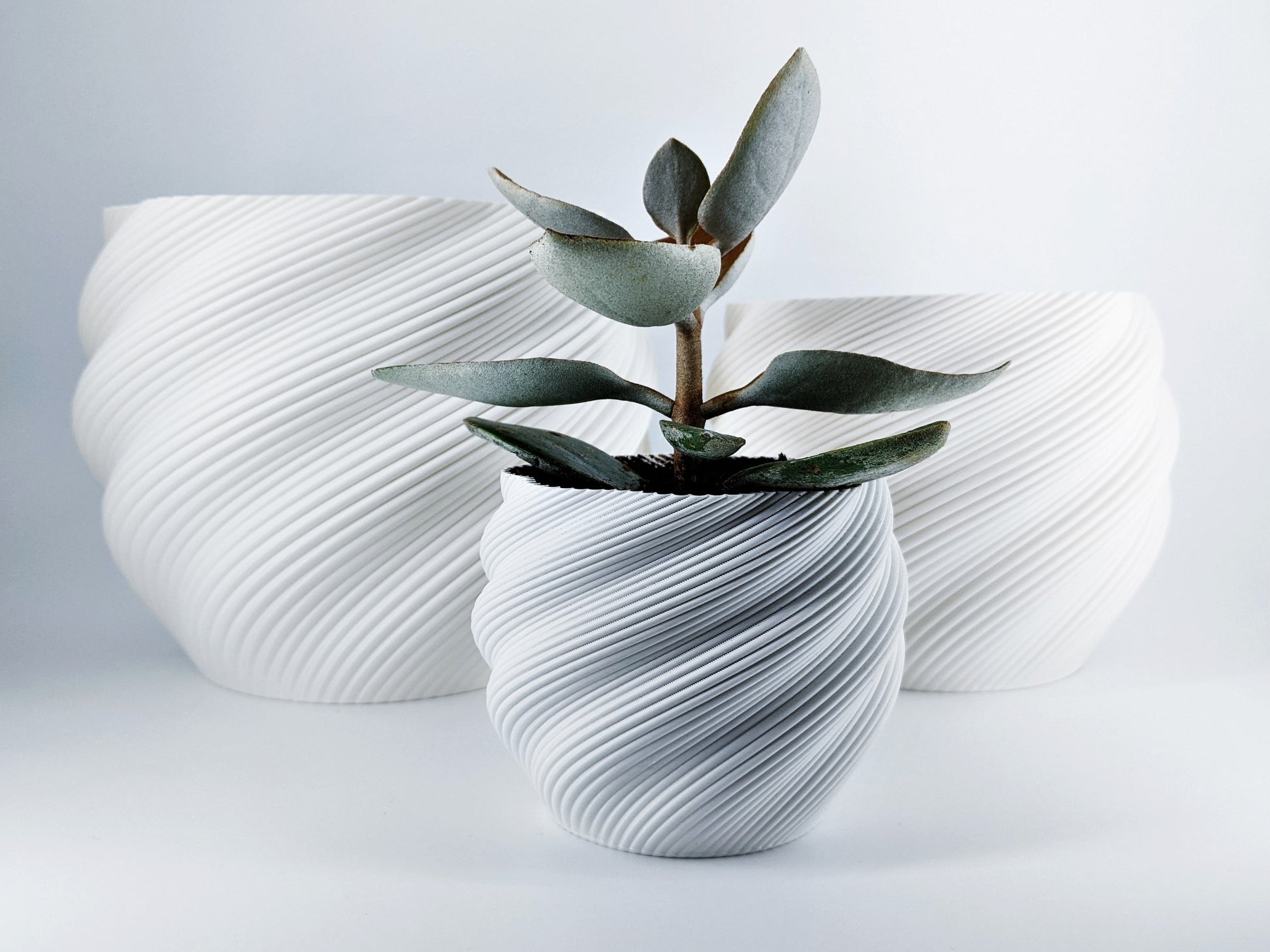 Veyra is elegance in motion. Its sweeping, spiral contours wrap smoothly around a deep charcoal form, creating a dynamic play of light and shadow from every angle. Designed to complement lush greenery or bold succulents, Veyra brings sculptural sophistication to any setting.