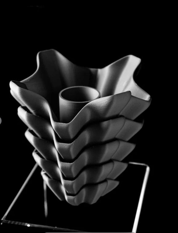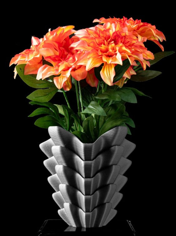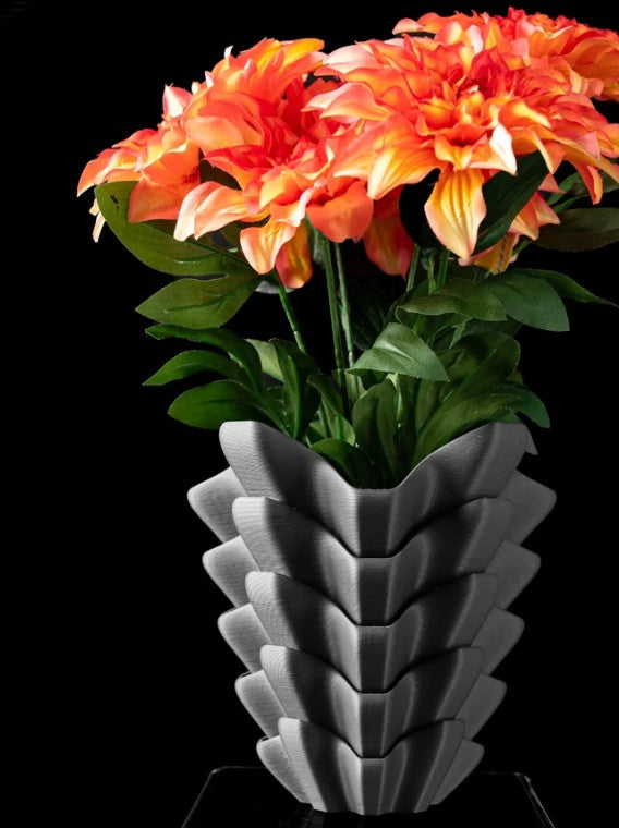 Bold, sculptural, and undeniably modern, Vorta is a vase designed to command attention. Its layered, armour-like geometry creates a sense of movement and strength, while the metallic finish adds a refined contemporary edge. Perfect for vibrant florals or as a standalone statement piece, Vorta brings architectural flair into any space — where art and home décor meet effortlessly.